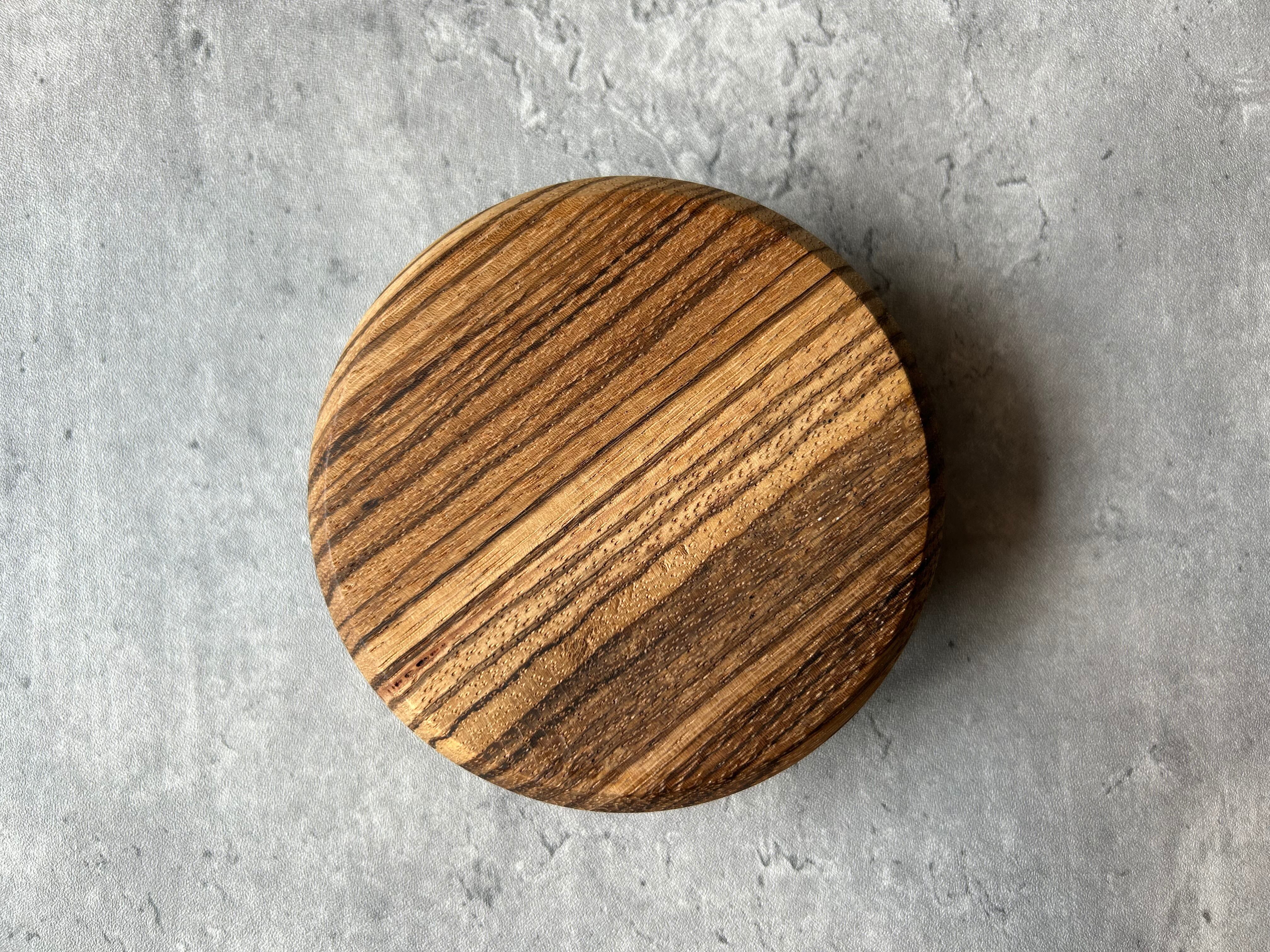 木目が鮮やかなゼブラウッドを贅沢に使用した存在感があるデザインの台座です。