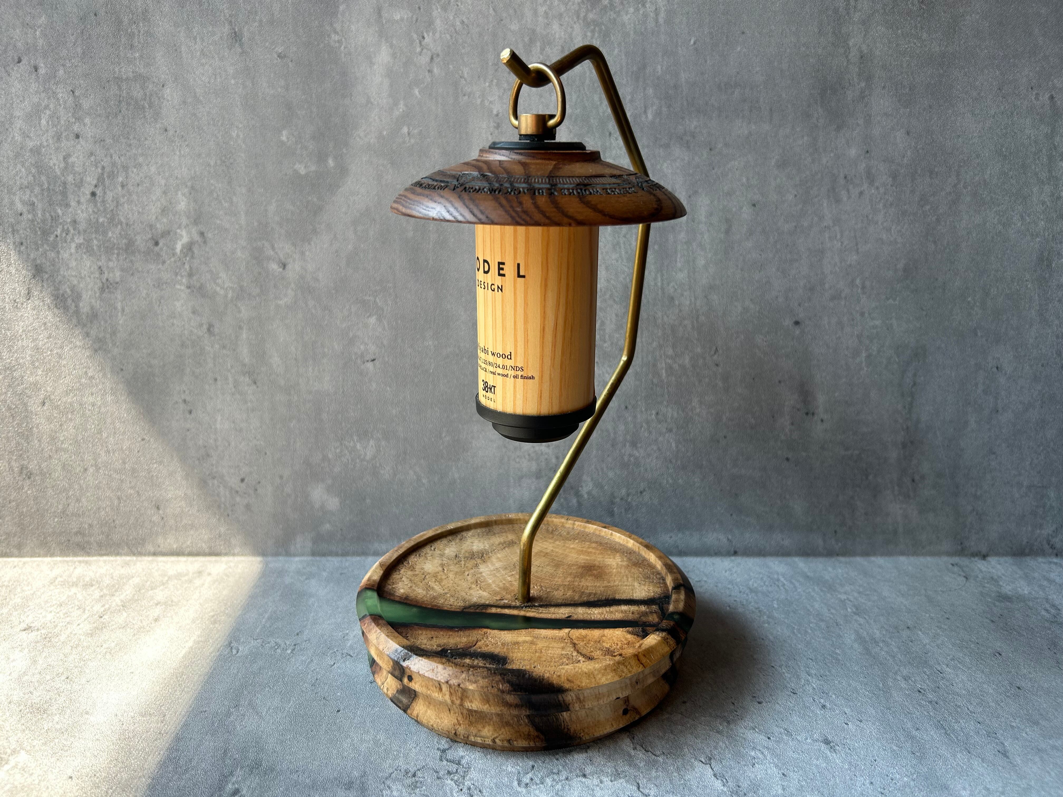 黒柿とレジンの組み合わせがアーティスティックな仕上がりの台座、ランタンスタンドです。