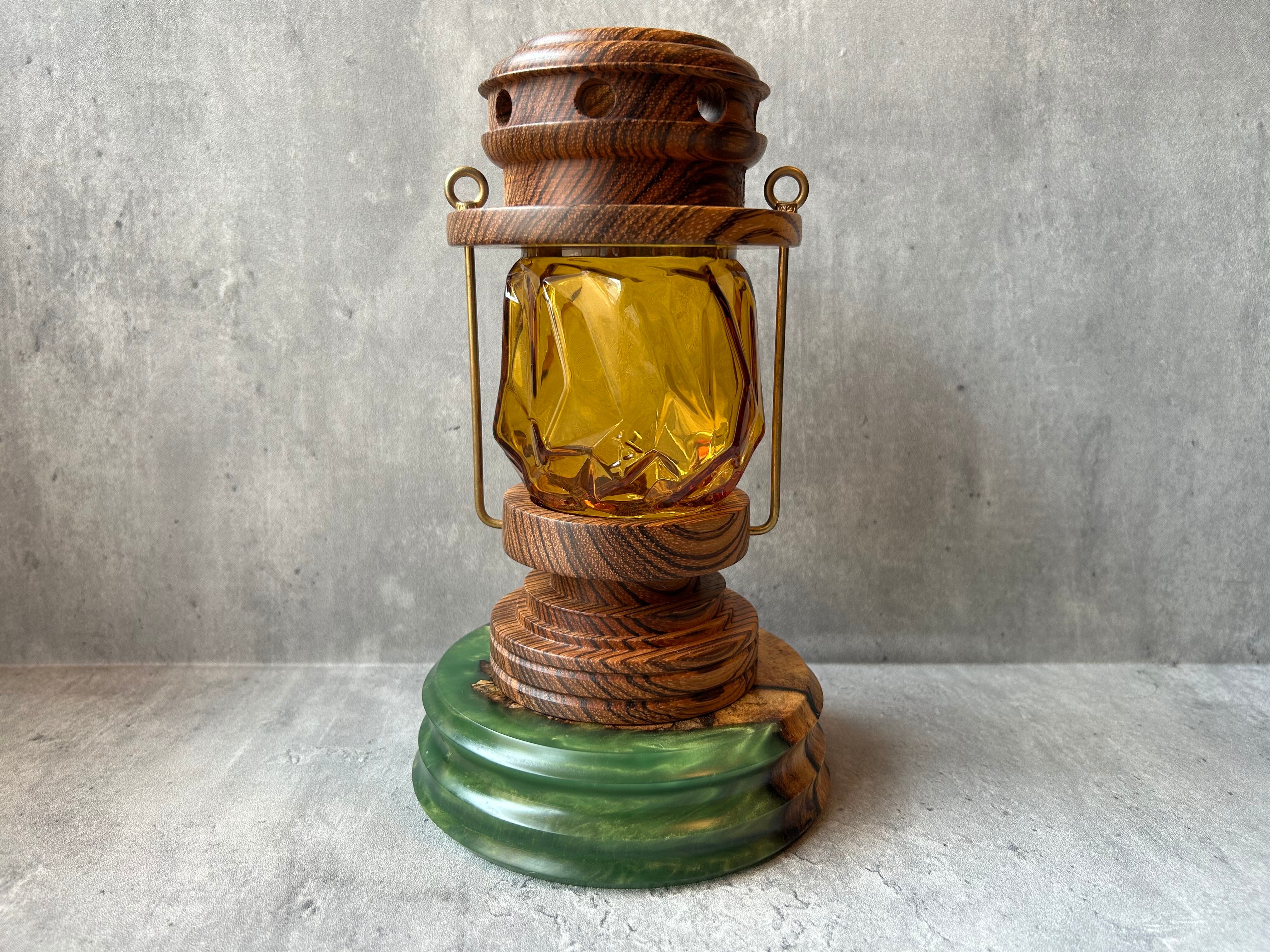 黒柿とレジンの組み合わせがアーティスティックな仕上がりの台座、ランタンスタンドです。