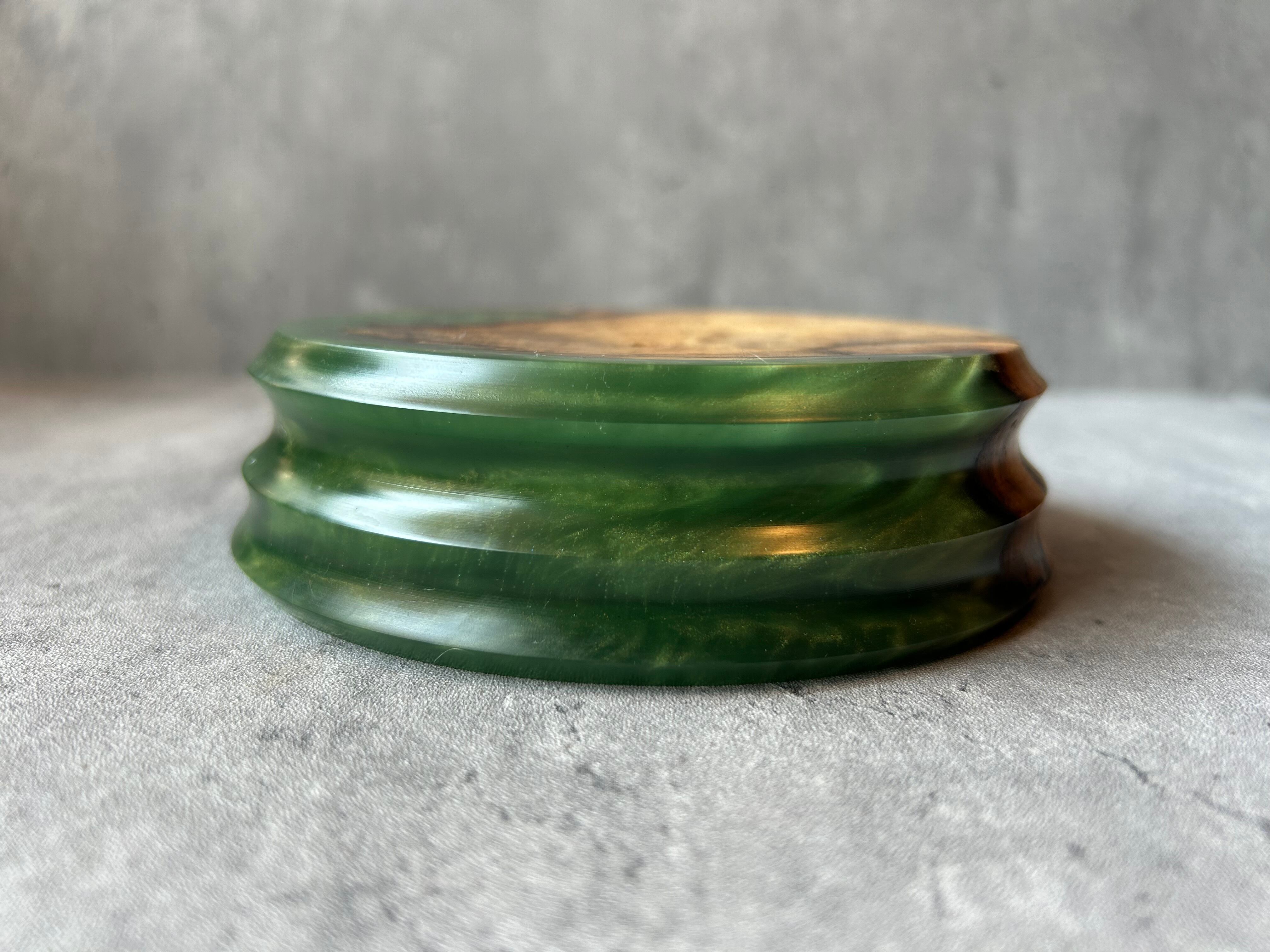グリーンのレジン部分はシルバーのラメを施した、深みのある色合いです。