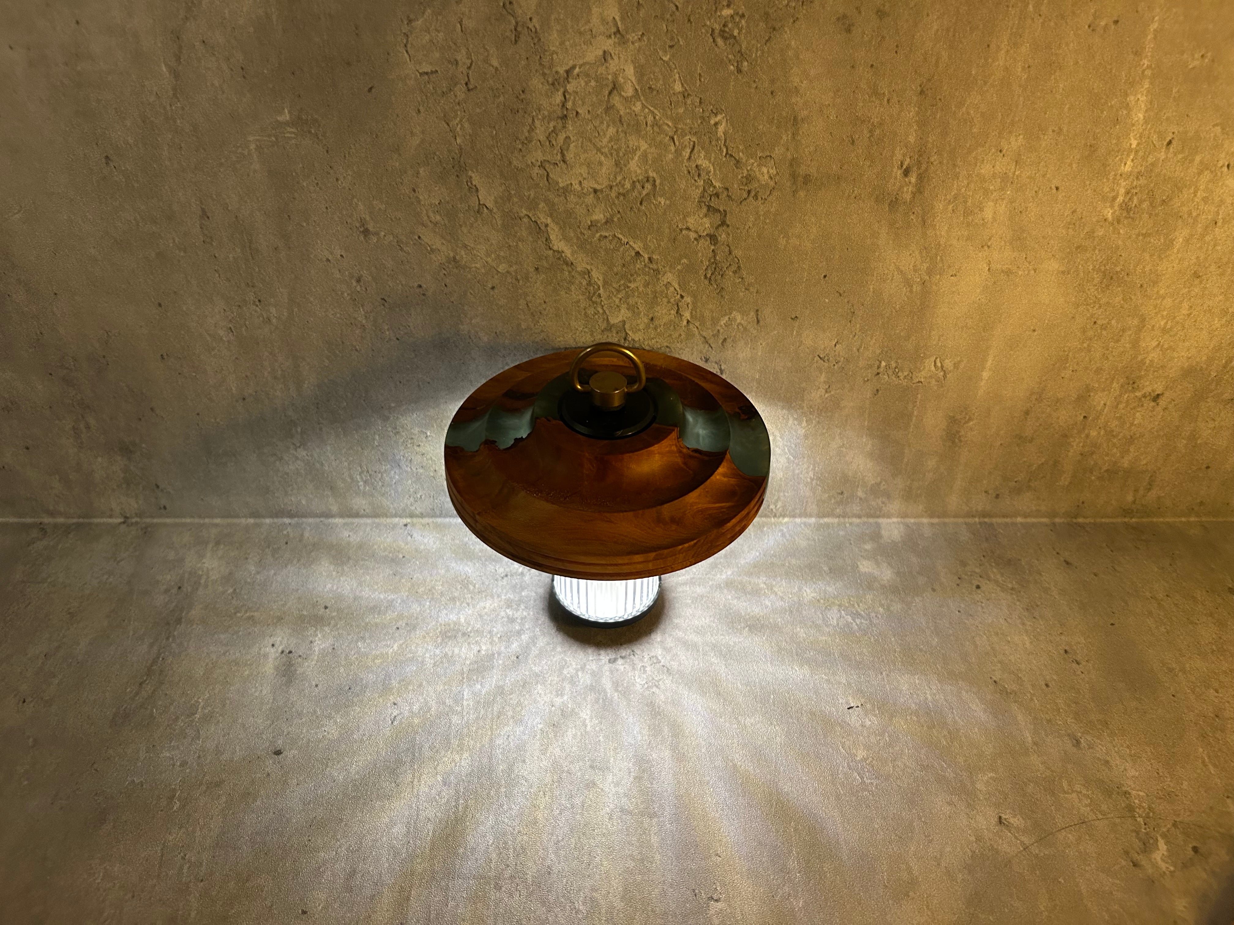 オニグルミ(ジャパニーズウォールナット)とレジンを組み合わせて制作した、38灯専用ランプシェードです。