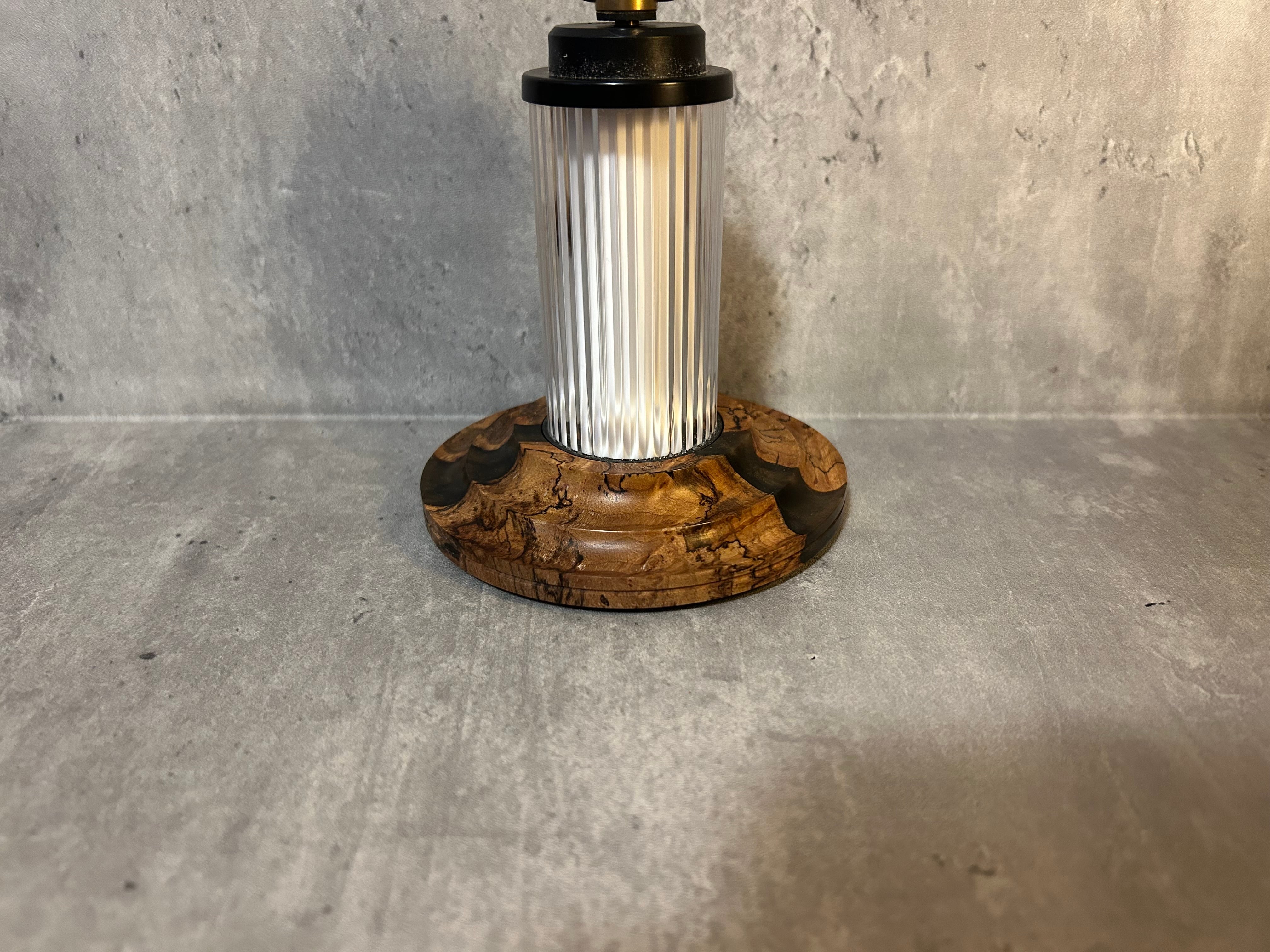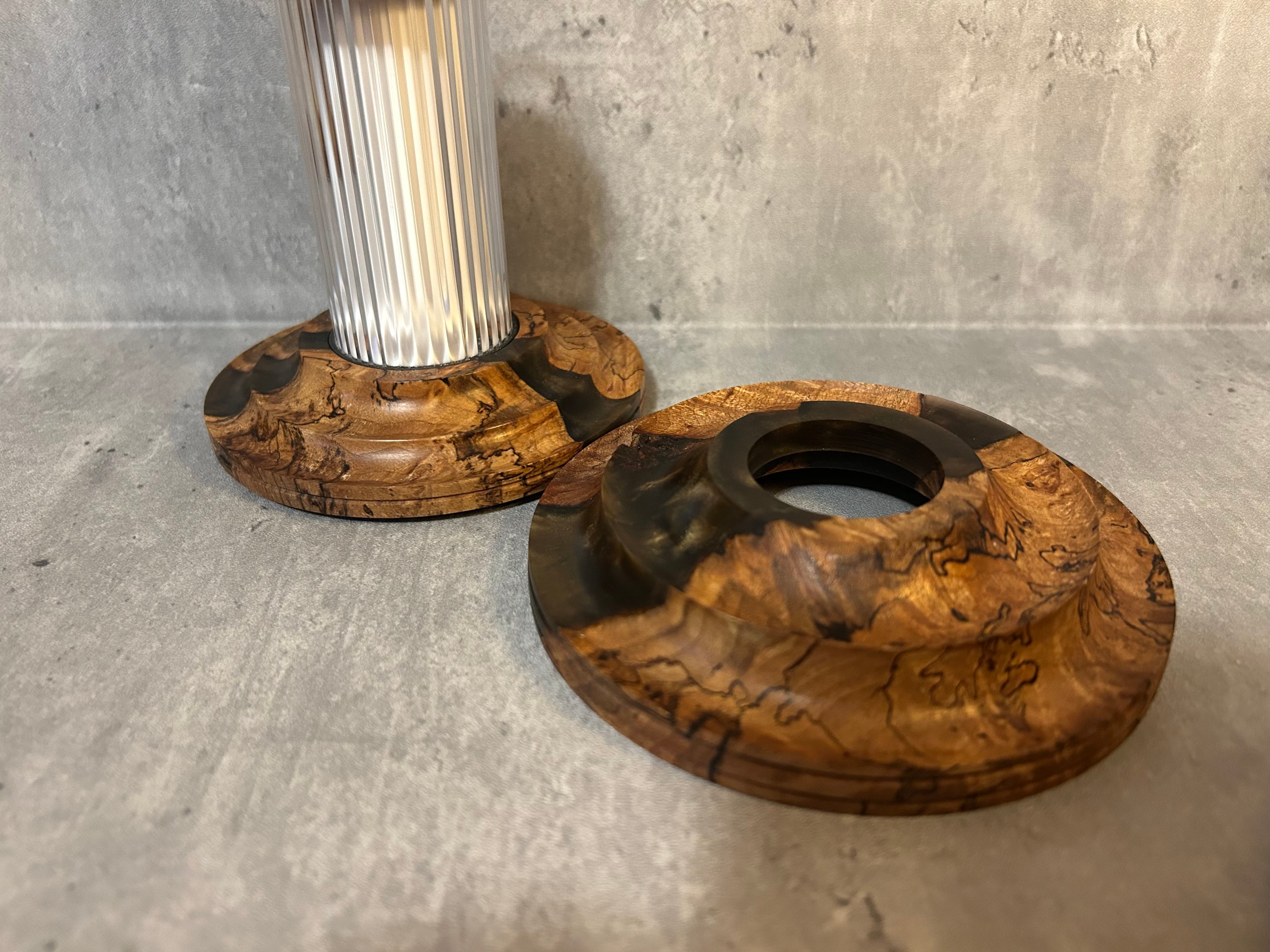 スポルテッド・メープルとレジンを組み合わせて制作した38灯専用ランプシェードと台座のセットです。